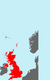 The following examples show London (highlighted in blue) which is 0.1° longitude, 51.5° latitude. Note how there is map cropping because the map is trying to display only Great Britain (as specified) and fill the designated chart without distortion.